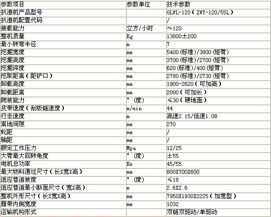 冠盛GLWL-120(ZWY-120/55L)履帶式扒渣機技術參數: