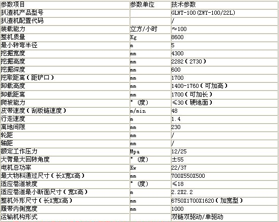 履帶扒渣機GLWT-100(ZWY-100/22L)技術參數: